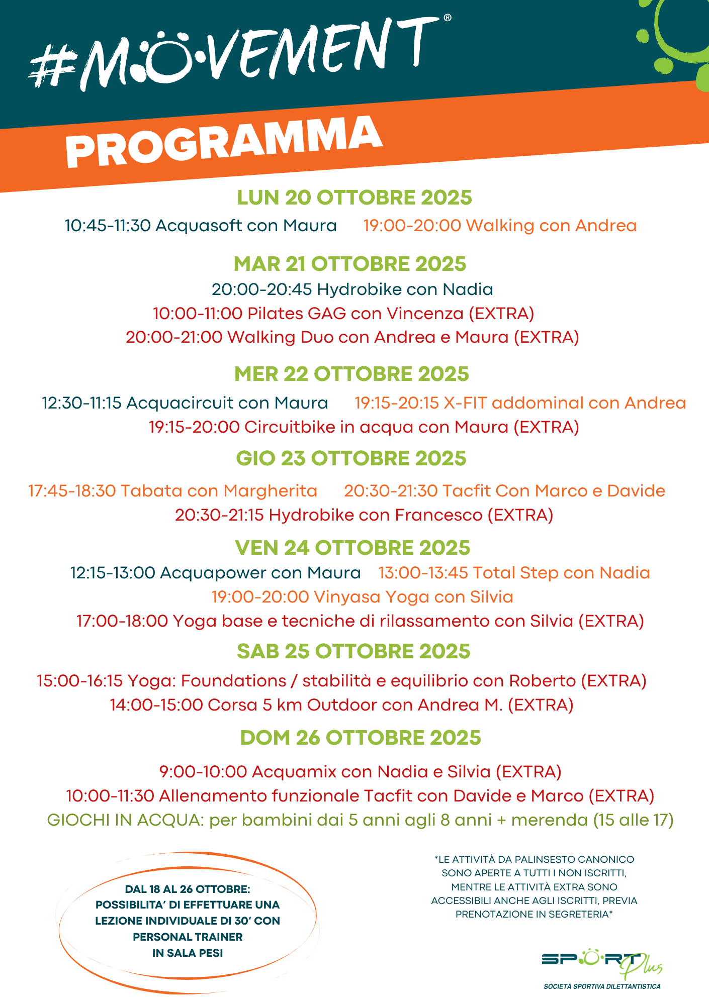 Scegli la tua attività preferita, partecipa (invita anche i tuoi amici), goditi il “movimento”, vinci la “Sfida Movy” e aiuta farla vincere anche al nostro centro nella gara tra impianti sportivi.
