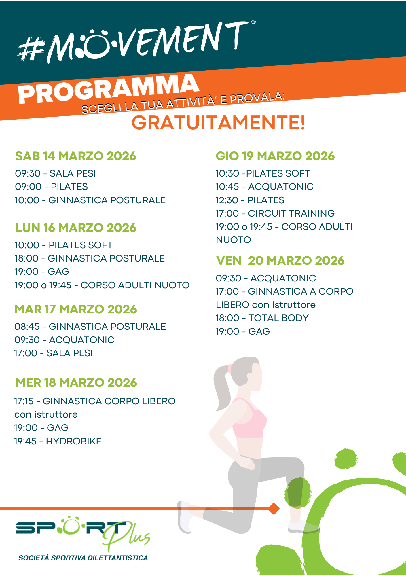 Scegli la tua attività preferita, partecipa (invita anche i tuoi amici) e goditi il “movimento”.