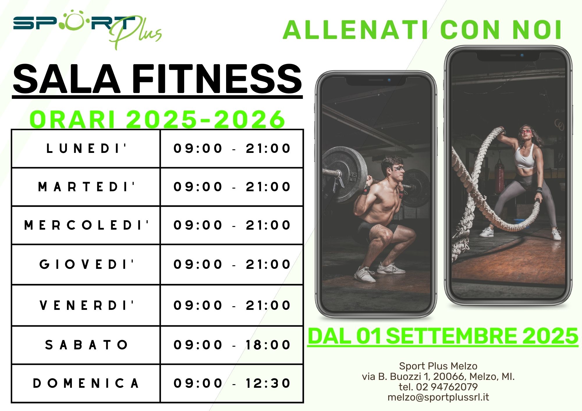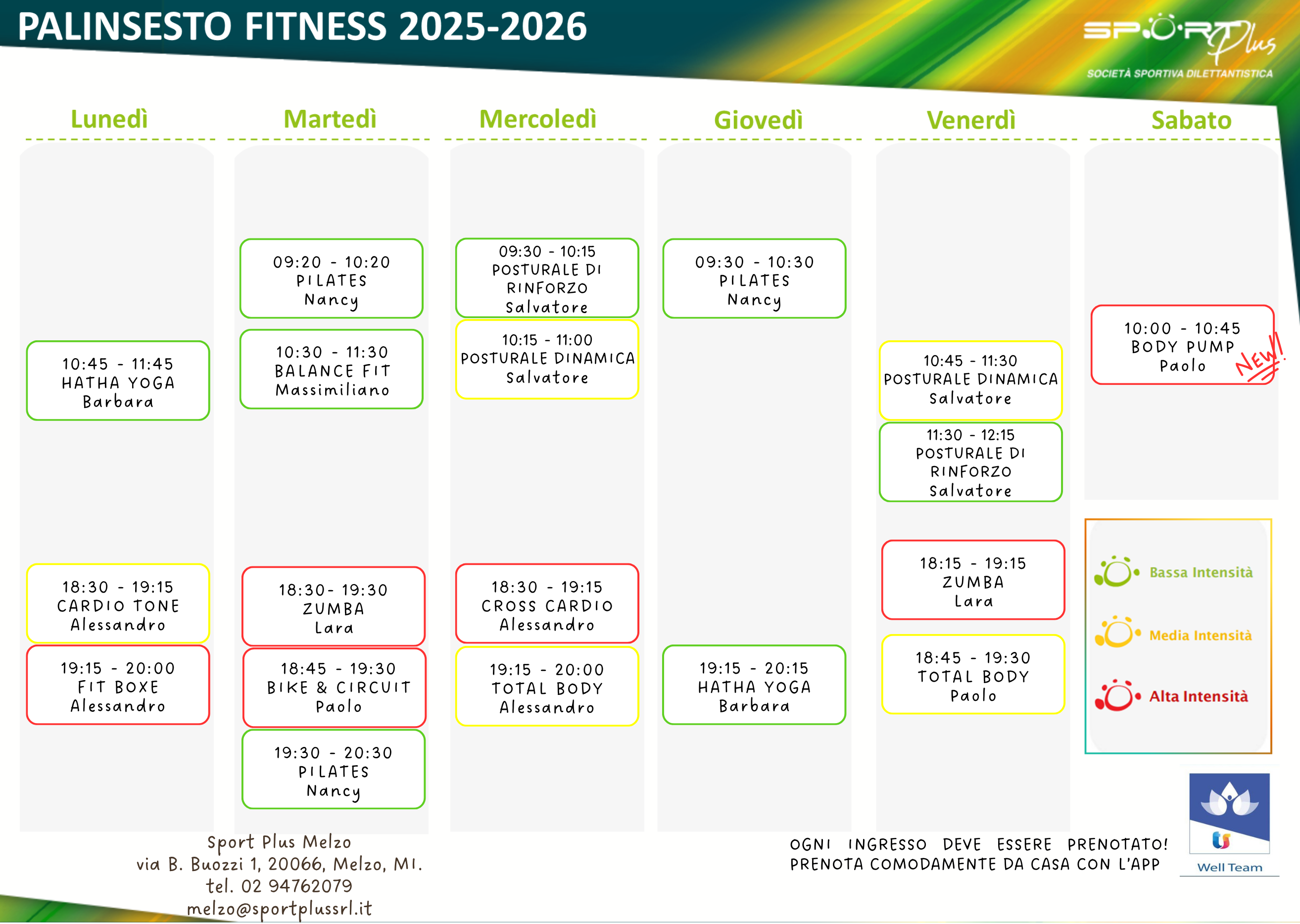 ORARI CORSI FITNESS, ACQUAFITNESS, NUOTO GUIDATO E SALA PESI 2025 -2026